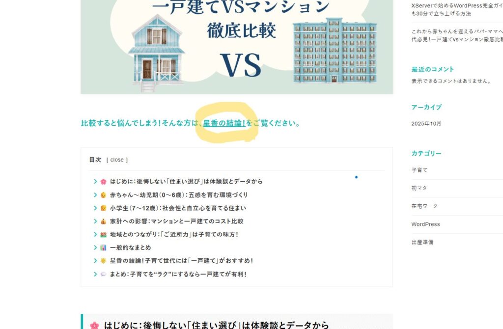 「星香の結論」をくりっくすると、ページ内の該当ページへ飛びます。