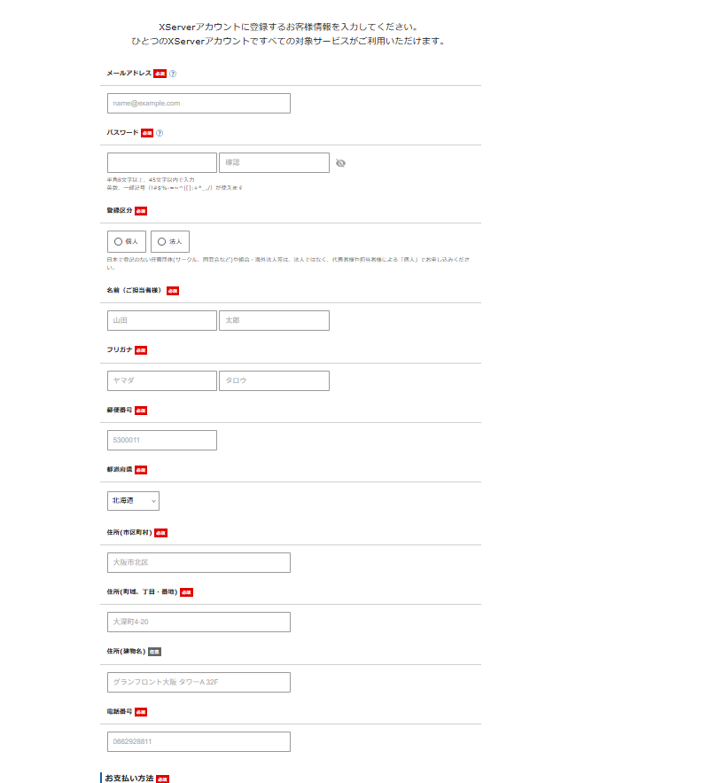 - 「Xserverレンタルサーバー」の「新規お申込み」をクリック