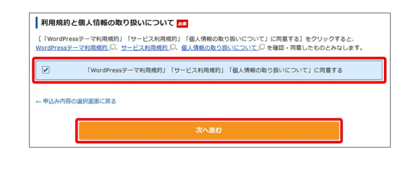 内容を確認して、「この内容で申し込みをする」をクリックします。
