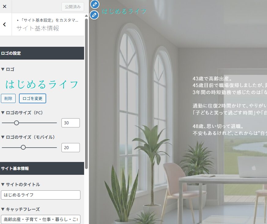 ロゴ・サイトタイトル・キャッチフレーズ設定