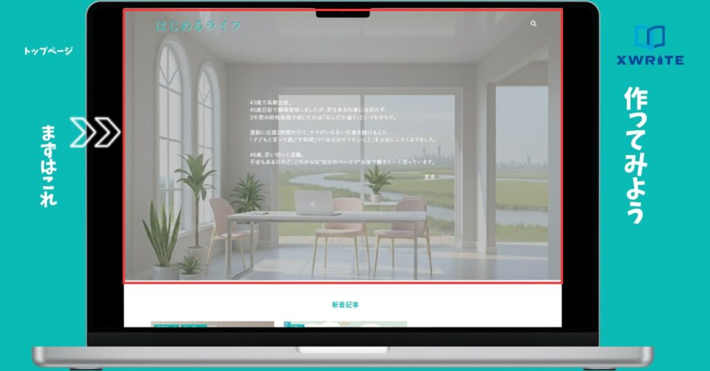 人気テーマ「XWRITE(エックスライト)」を使って、おしゃれで見やすいトップページを作ってみましょう。