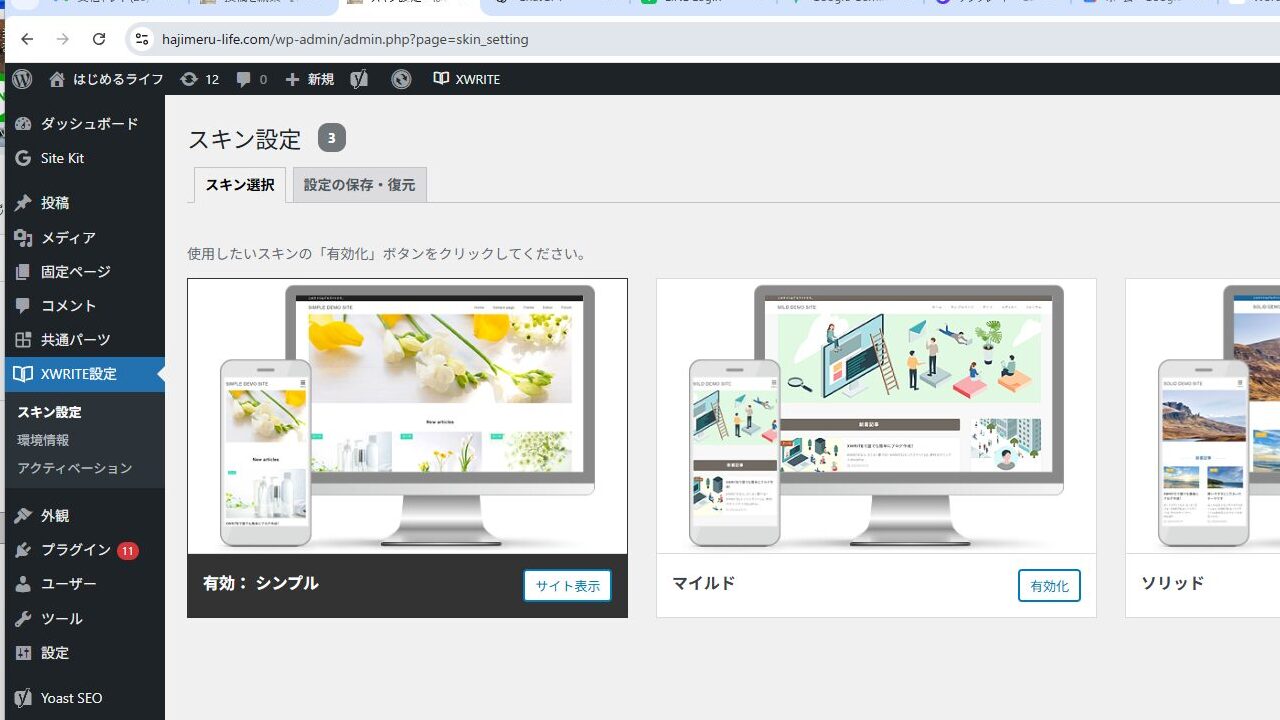 今回は、初心者でも扱いやすく、シンプルで洗練された「Simple」スキンを使います。